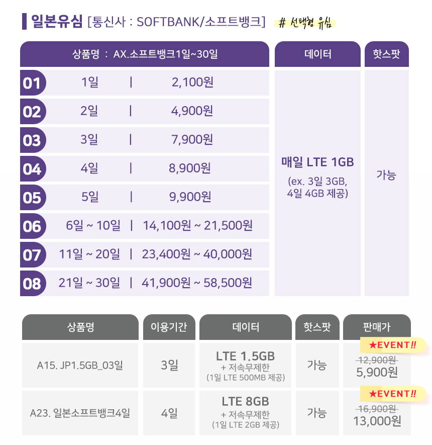 일본유심 후쿠오카 오사카 5G 로컬망 소프트뱅크 유심칩의 특징