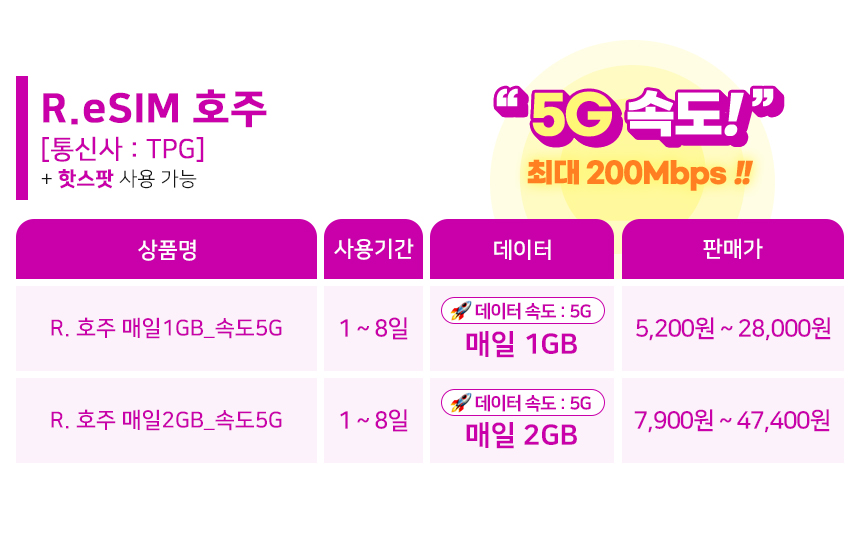 “호주 이심 뉴질랜드 시드니 eSIM TPG 5G 1일 1GB e심 핫스팟 로밍전화”의 매력 포인트